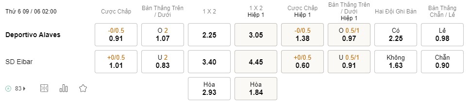 Tỉ lệ kèo Alaves vs Eibar