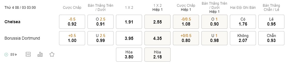 Tỉ lệ kèo Chelsea vs Dortmund