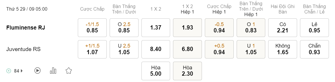 Soi kèo hiệp 1 Fluminense vs Juventude: 0.94*0.5*0.94