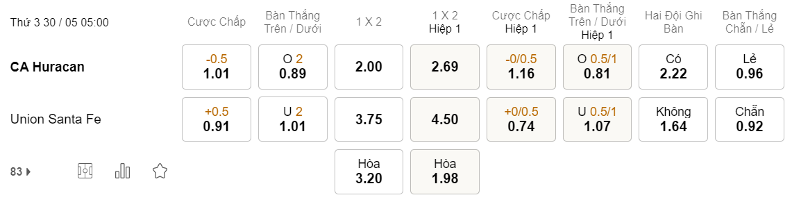 Soi kèo hiệp 1 Huracan vs Union: 1.16*0/0.5*0.74