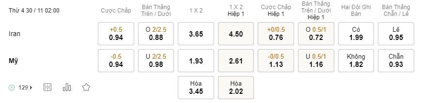 Soi kèo châu Á Iran vs Mỹ: 0.94*0.5*0.94