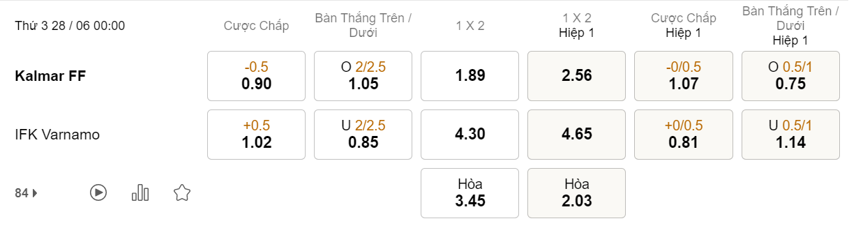 Soi kèo hiệp 1 Kalmar vs Varnamo: 1.07*0/0.5*0.81