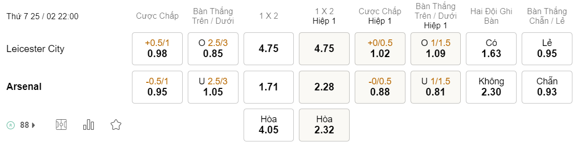 Soi kèo châu Á Leicester vs Arsenal: 0.98*0.5/1*0.95