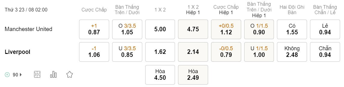 Soi kèo hiệp 1 MU vs Liverpool: 1.12*0/0.5*0.79