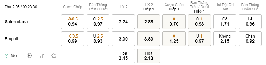 Soi kèo hiệp 1 Salernitana vs Empoli: 0.70*0*1.25