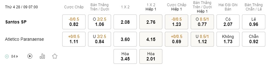 Tỉ lệ kèo Santos vs Athletico