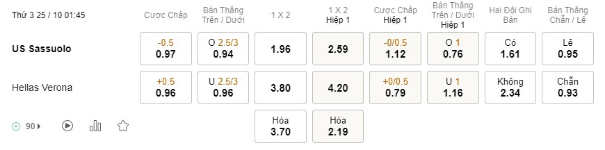 Soi kèo châu Á Sassuolo vs Verona: 0.97*0.5*0.96